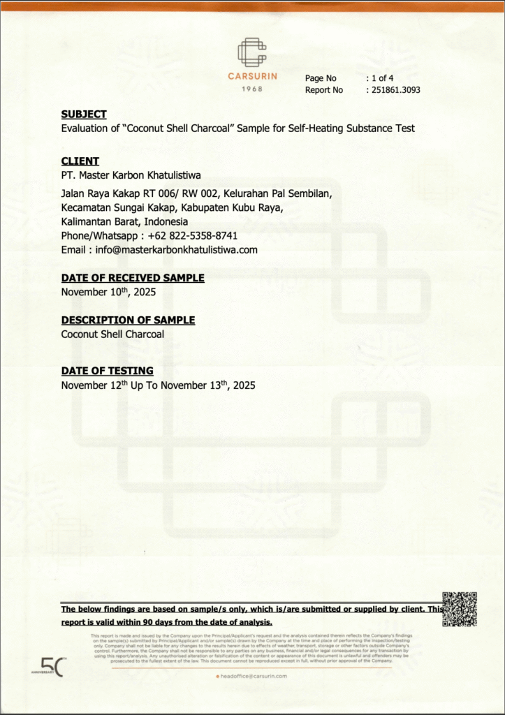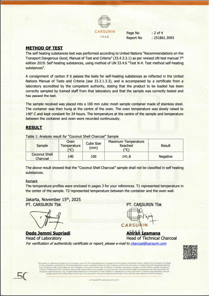 Self Heating Substance Test Certificate